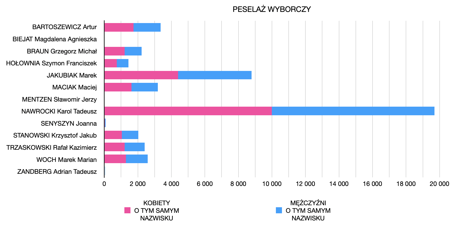 – liczba kobiet o nazwisku TRZASKOWSKA: 1218
